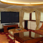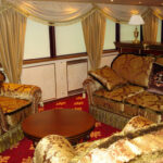 - Интерьер кают-компании выполнен в восточном стиле, что еще больше располагает к комфортному и приятному времяпрепровождению. Мягкие диваны и кресла с шелковыми подушками, большой плазменный телевизор и караоке – все это дает возможность отдохнуть в семейном кругу, наслаждаться общением с друзьями.