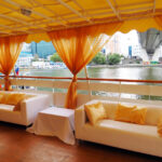 - Носовая часть судна – отдельная изолированная зона с барной стойкой, мягкими диванами и стационарным любительским караоке. Можно использовать для приветственного коктейля, как зону отдыха или детскую комнату.