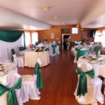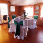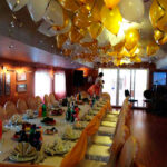 - Уютный банкетный зал, в котором можно с удобством разместить 50-60 гостей в банкетной рассадке и до 70-80 фуршетом. Зал отделан пробковым материалом в теплых золотисто-шоколадных оттенках. Окна небольшие, но за счет светлых тонов интерьера возникает ощущение комфорта и уюта. Картины на стенах органично дополняют атмосферу праздника. Интерьер ненавязчивый, что позволяет создать украшение теплохода под любое мероприятие и в любом стиле.