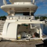- Под кормовой частью обустроена кают-компания. Здесь также расположен небольшой гараж для гидроцикла и моторной лодки.