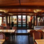Теплоход имеет современный дизайн внутренних помещений. На закрытой части главной палубы расположен зал с панорамным остеклением и барной стойкой, рассчитанный на размещение до 50 человек в банкетной посадке; при фуршете и прогулке – до 100 человек. Имеется небольшая открытая площадка в носовой части до 20 человек.