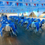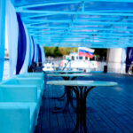 - Верхняя палуба очень вместительная. Здесь можно провести дискотеку, выступления музыкальных групп, фуршет. Для этого есть соответствующее музыкальное оборудование. Палуба защищена непромокаемым тентом.
