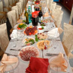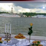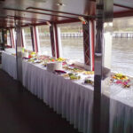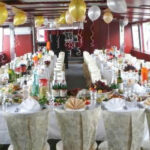 Ресторан теплохода вмещает до 100 гостей фуршетом и до 80 в банкетной рассадке. Разнообразное меню от шеф-повара вас приятно удивит и порадует. Для проведения банкета или фуршета на теплоходе вы можете заказать кейтеринговое обслуживание у СК Мосфлот. Алкогольные напитки вы можете принести с собой без "пробкового" сбора".