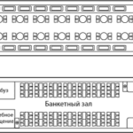 - На главной палубе теплохода расположен банкетный зал, который способен принимать до 100 гостей фуршетом и до 80 при банкетной рассадке. Интерьер зала выполнен в сине-белой цветовой гамме: белый потолок, синий ламинат, сине-голубые стены. Все просто и лаконично. Есть бар, телевизор, музыкальный центр. Рядом с рестораном располагается хорошо оборудованный камбуз.