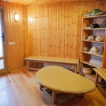 - На нижней палубе располагаются: банкетный зал, музыкальный салон, гардеробная комнату, сауна, каюты, камбуз, общественные санузлы.