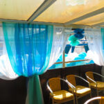 - Носовая часть судна в зависимости от формата мероприятия может трансформироваться для: чайной церемонии, сцены, детского уголка. По желанию заказчика зоны отделяются эффектными шторками