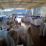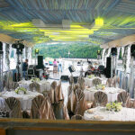 • Верхняя прогулочная палуба с защитным навесом предназначена для проведения фуршетов, банкетов, стильных вечеринок и дискотек на 200 гостей. Есть концертная площадка, легкая палубная мебель.