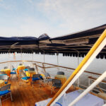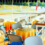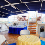 - Двухуровневая верхняя палуба представляет собой пространство под открытым небом идеально подходящее для фуршета, банкета, дискотеки или барбекю. При необходимости часть палубы можно накрыть непромокаемым тентом.