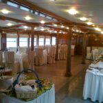 - В центре главной палубы расположен банкетный зал вместимостью до 70 гостей фуршетом и до 55 в банкетной рассадке. Интерьер зала выполнен в классическом стиле, можно даже сказать в стиле классического минимализма. Все просто и лаконично. Для отделки пола и потолка были использованы ламинированные панели, а декоративные столбы выполнены из натурального дерева.