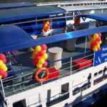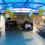 - Отличительная особенность верхней палубы – раздвижная крыша и расширенное пространство для прогулок вдоль бортов теплохода. Легкая и удобная металлическая мебель.