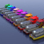 В «Цветочной Флотилии» 10 однопалубных теплоходов: желтый — «Подсолнух», розовый — «Роза», оранжевый — «Астра», синий — «Василек», красный — «Гвоздика», сиреневый — «Лаванда», бирюзовый — «Незабудка», зеленый — «Орхидея», алый — «Тюльпан» и «Фуксия» в цвете созвучном названию.