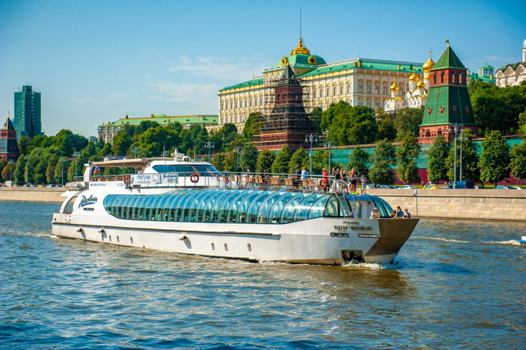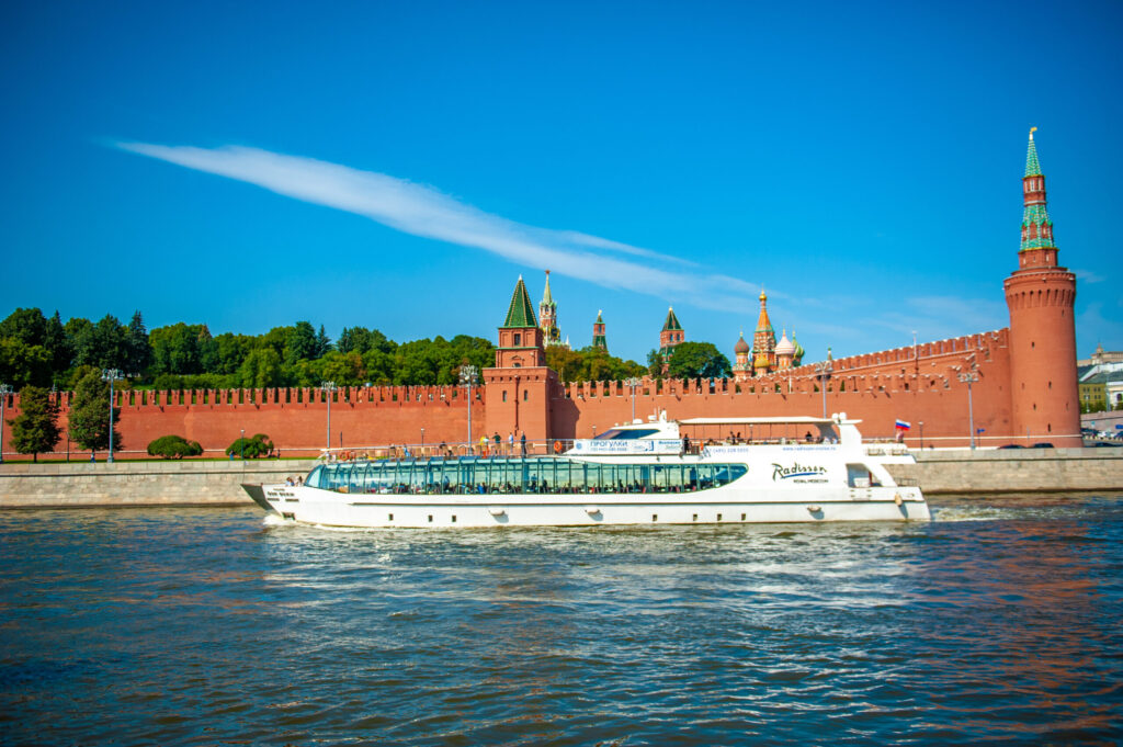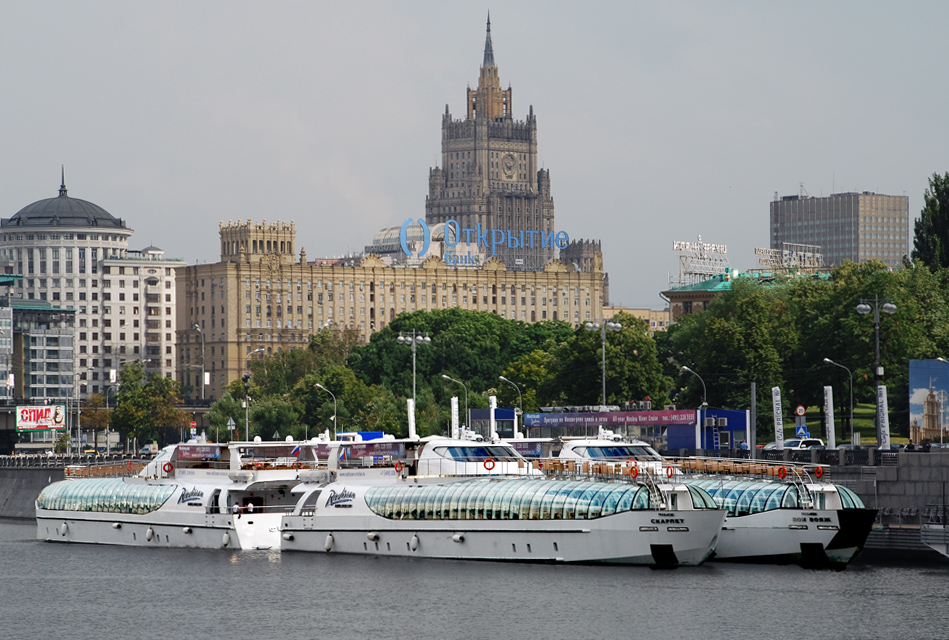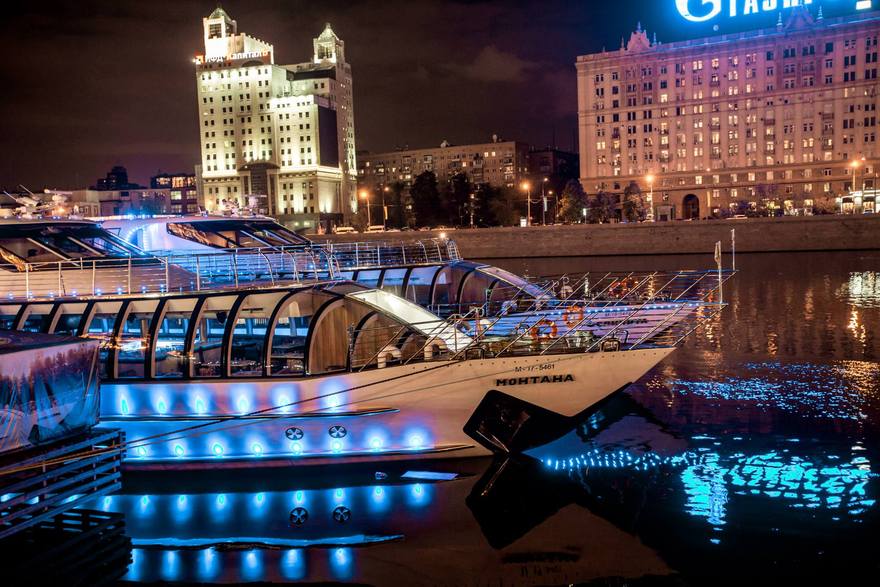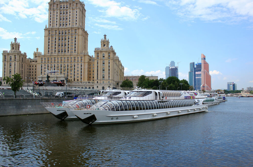 Отправление от причала Гостиница Украина- Украина, Белый Дом, Новодевичий монастырь, Воробьевы горы, МГУ, парк Культуры, Лужники, Крымский мост, Памятник Петра Первого, Храм Христа Спасителя, театр Эстрады, Московский Кремль, Собор Василия Блаженного, высотка на Котельнической набережной – разворот – возвращение к причалу Гостиница Украина.