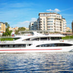В стоимость сета входят закуски, салаты, горячие блюда, десерты и напитки. Теплоход отходит от центрального причала «Киевский Вокзал» с маршрутом по всем главным достопримечательностям Москвы, разворотом у Дома Музыки и возвращением обратно на причал «Киевский вокзал».