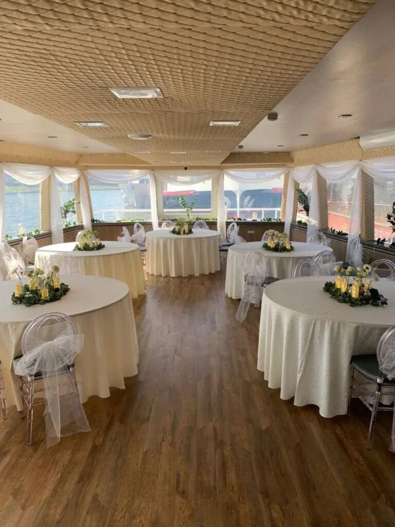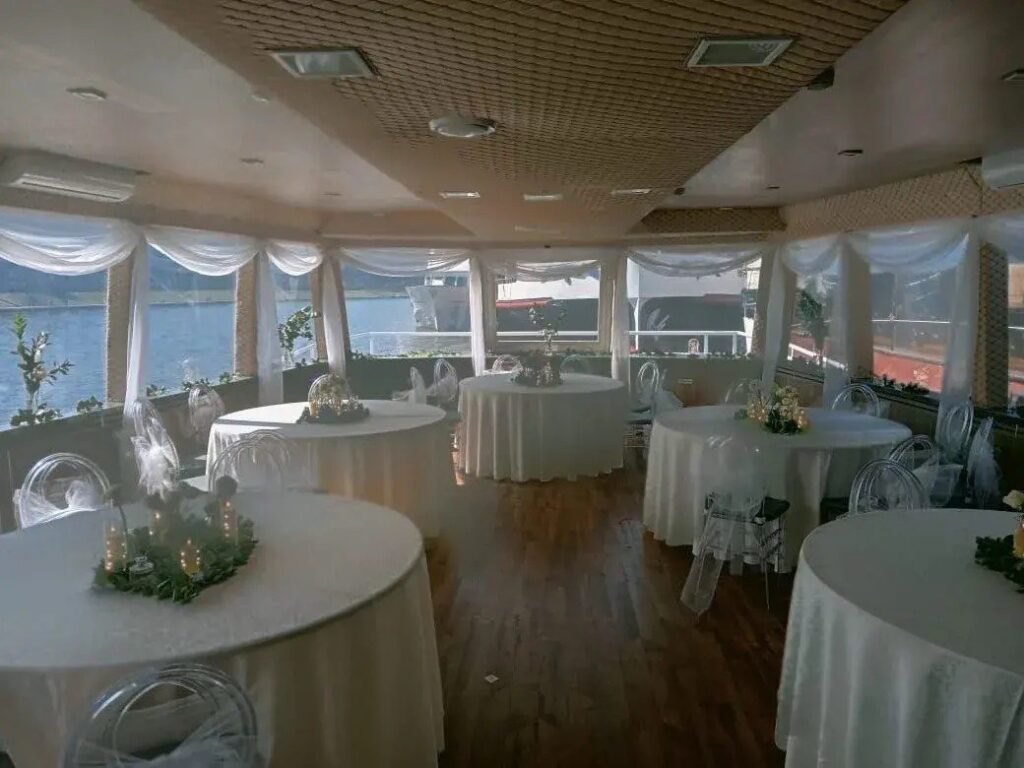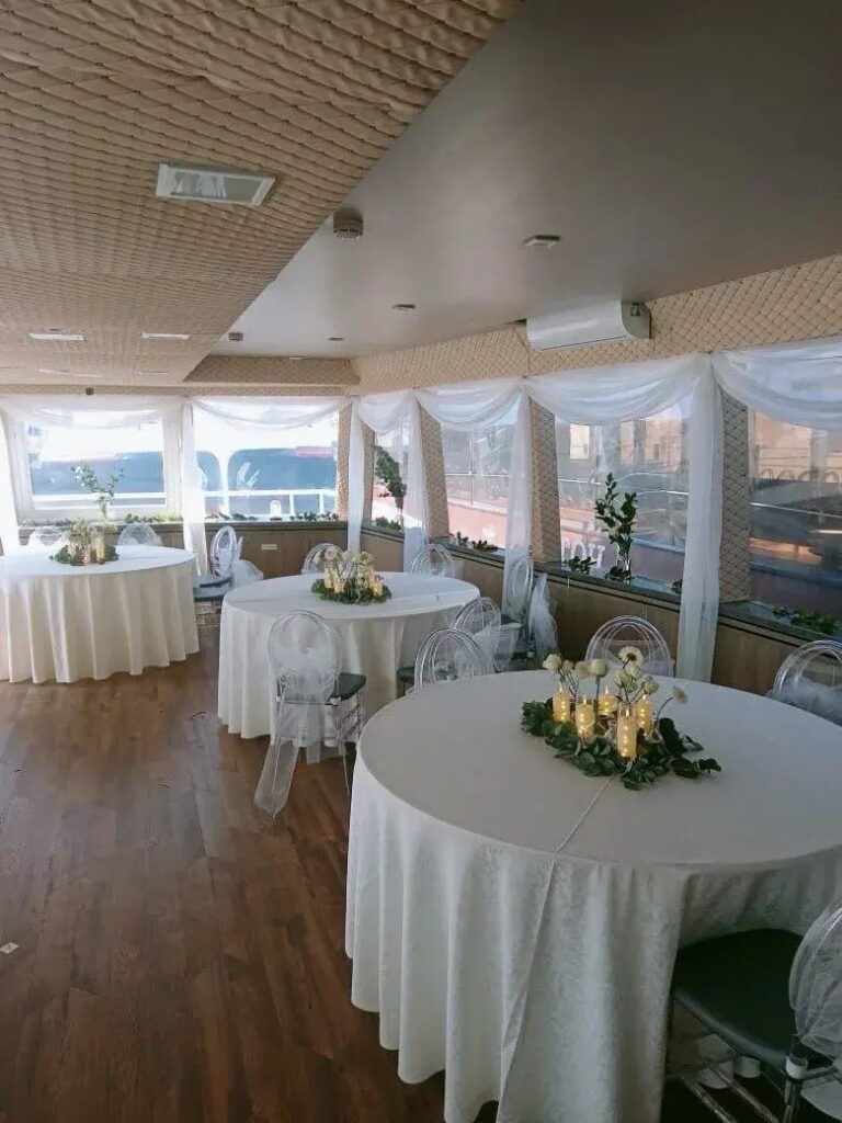 Мы организуем для Вас не только шикарный стол, но и предоставим всем без исключения возможность находится на первой линии просмотра салюта. На борту будет не более 35 гостей и вся верхняя палуба, включая переднее пространство перед рубкой капитана, будет предоставлена для просмотра красочного фейерверка.