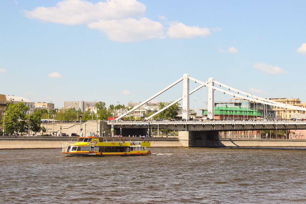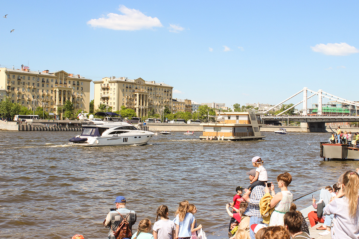 Около 14 часов началось движение судов по Москве-реке. Одним из первых прошел теплоход «Вдохновение», затем «Индиго», «Алина Танго» и другие.