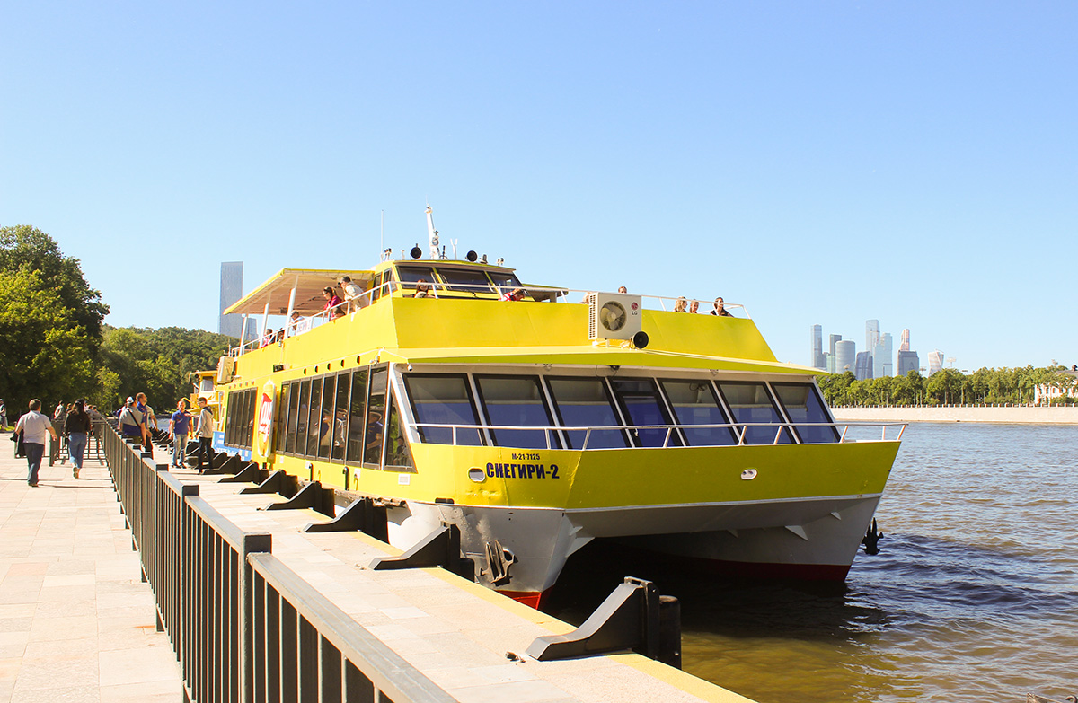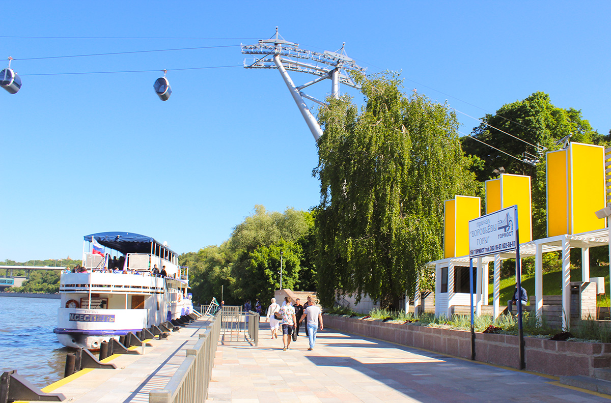Рядом с канатной дорогой расположен причал «Воробьевы горы» от которого отправляются теплоходы на речные прогулки по историческому центру Москвы. Теплоход-катамаран «Снегири» идет по маршруту до Кремля с высадкой и посадкой на причалах «Парк культуры» и «Устьинский мост».