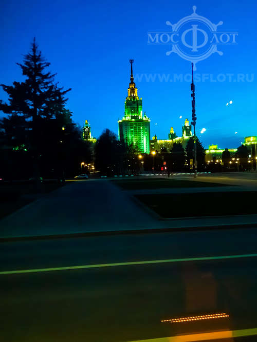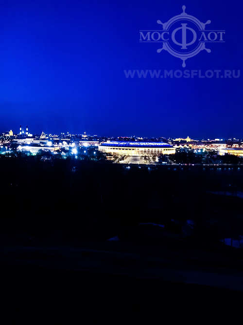 - Лужнецкая набережная и Воробьевы горы с видами на ночной город